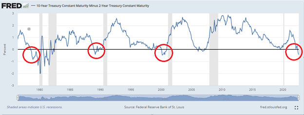 The existing “hyper” rate cycle pressures interest rate risk measures and creates potential credit risk problems. The temptation to load up on consumer credit to fund increased saving and borrowing costs is a serious risk. The large yield curve inversion that has developed is a reliable indicator of economic slowdown and potential credit problems. An inversion of this magnitude and swiftness has not occurred since before the financial crisis: the dot-com bubble, the late 80s, and earlier.
